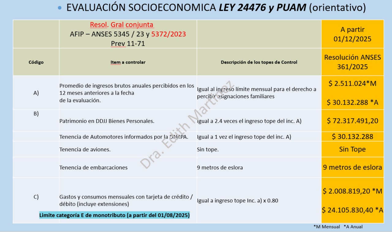Cuadro evaluación socio económica diciembre 2025